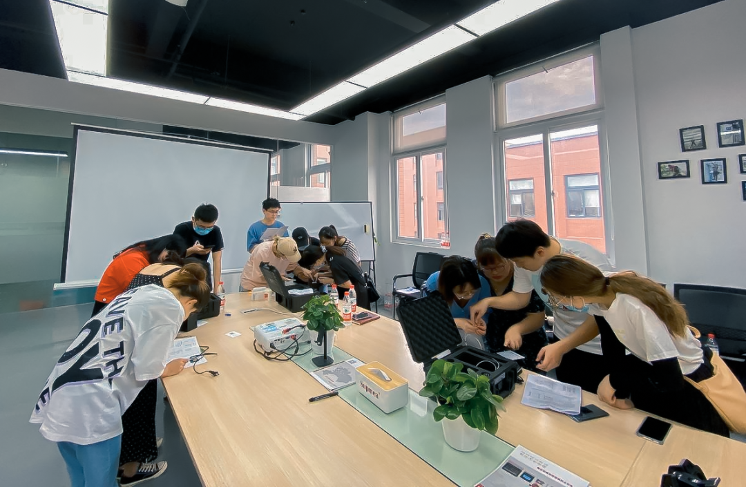 俗話說得好,“百聞不如一見,百看不如一練”,實操培訓的目的也正是如此。在培訓中,老師耐心地給新員工們介紹產品的原理與特點,“零距離”地接觸公司產品。
