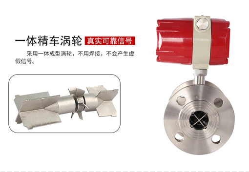 采用渦輪進行測量的流量計。它先將流速轉換為渦輪的轉速,再將轉速轉換成與流量成正比的電信號。這種流量計用于檢測瞬時流量和總的積算流量,其輸出信號為頻率,易于數字化。感應線圈和永久磁鐵一起固定在殼體上。當鐵磁性渦輪葉片經過磁鐵時,磁路的磁阻發生變化,從而產生感應信號。信號經放大器放大和整形,送到計數器或頻率計,顯示總的積算流量。同時將脈沖頻率經過頻率-電壓轉換以指示瞬時流量。